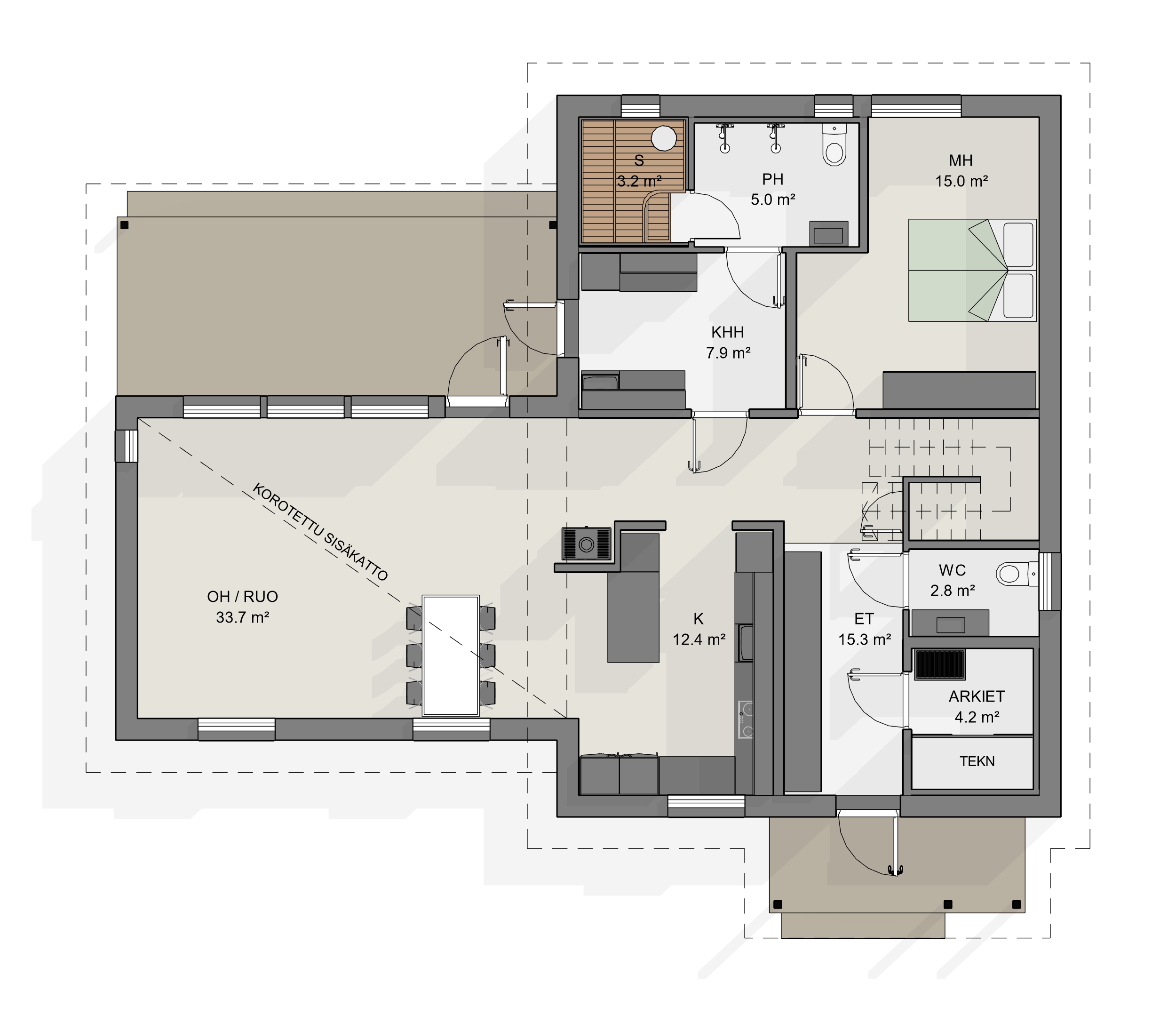- Erillinen arkieteinen + tilava kaapisto pääeteisessä