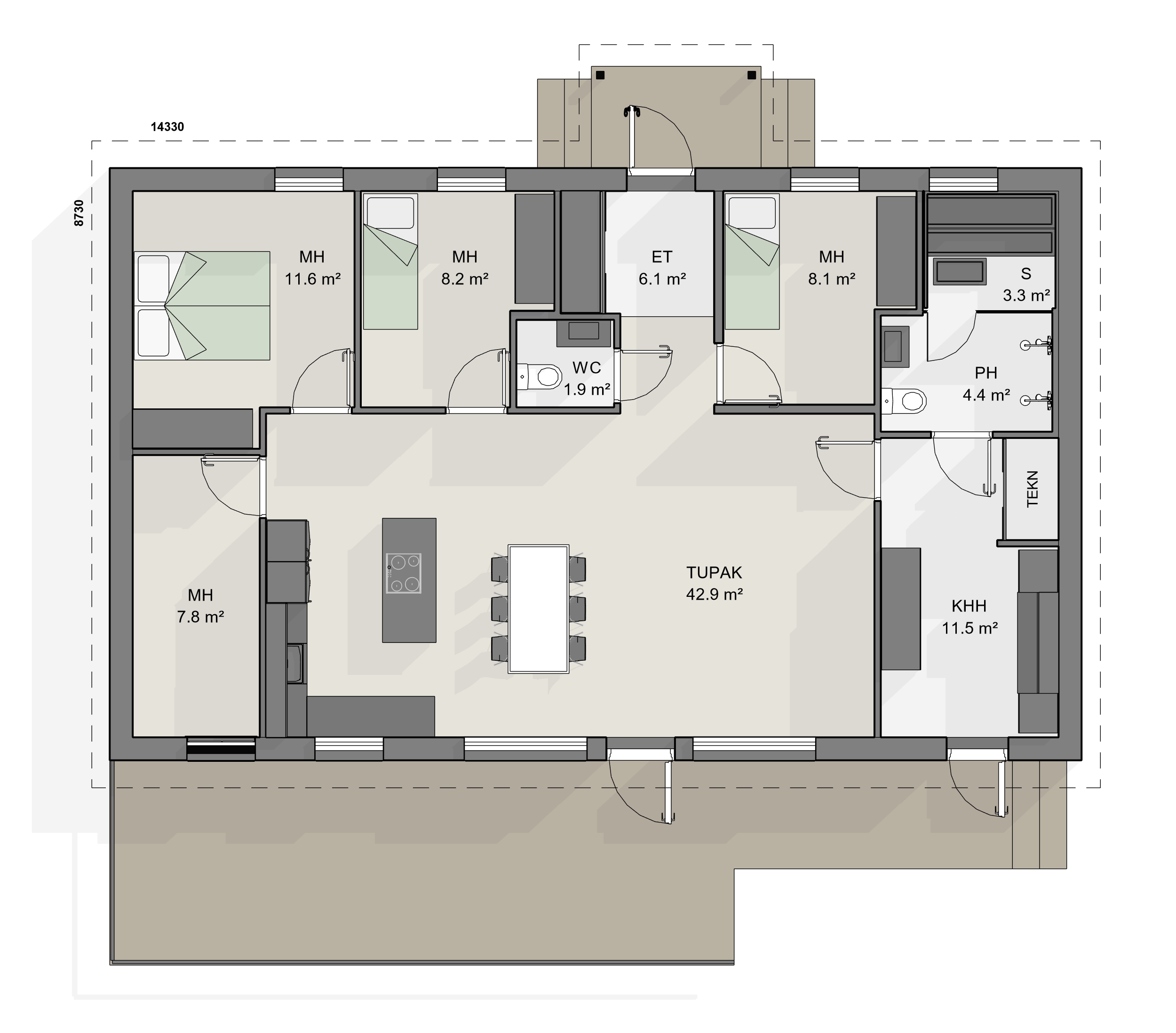 • Kodinhoitohuone omalla sisäänkäynnillä
